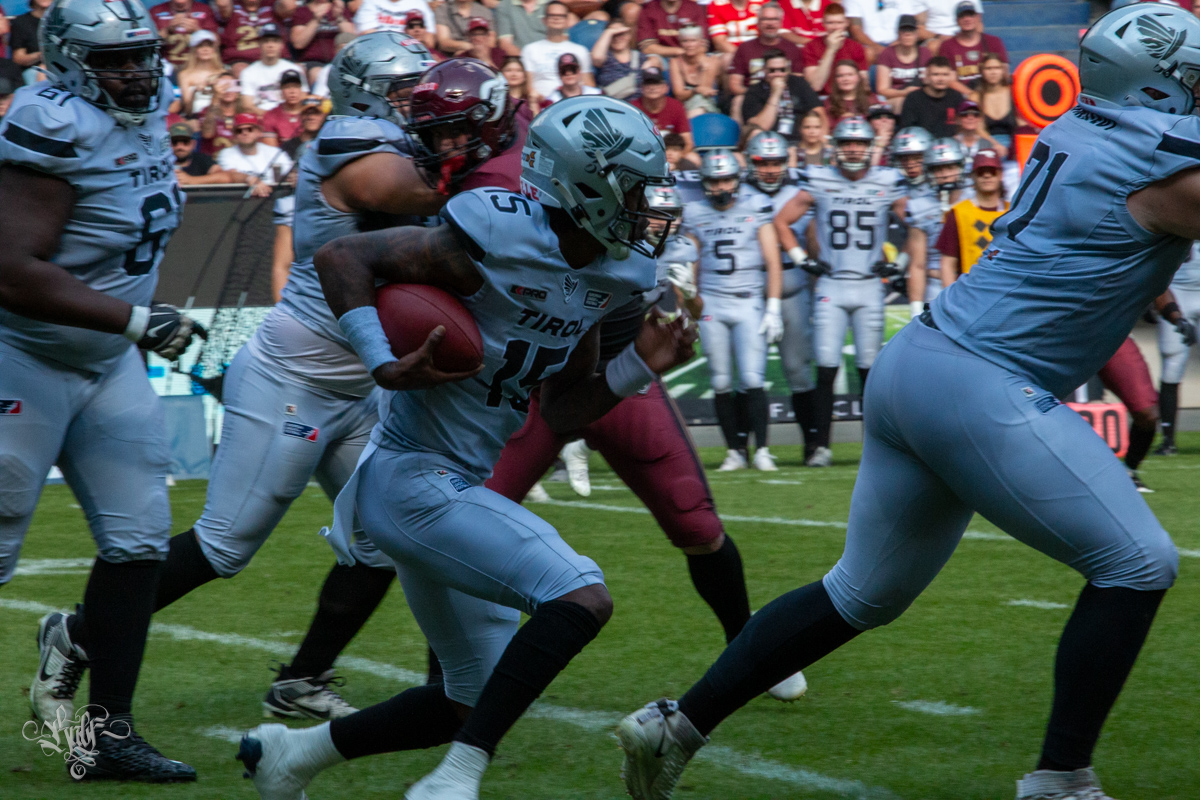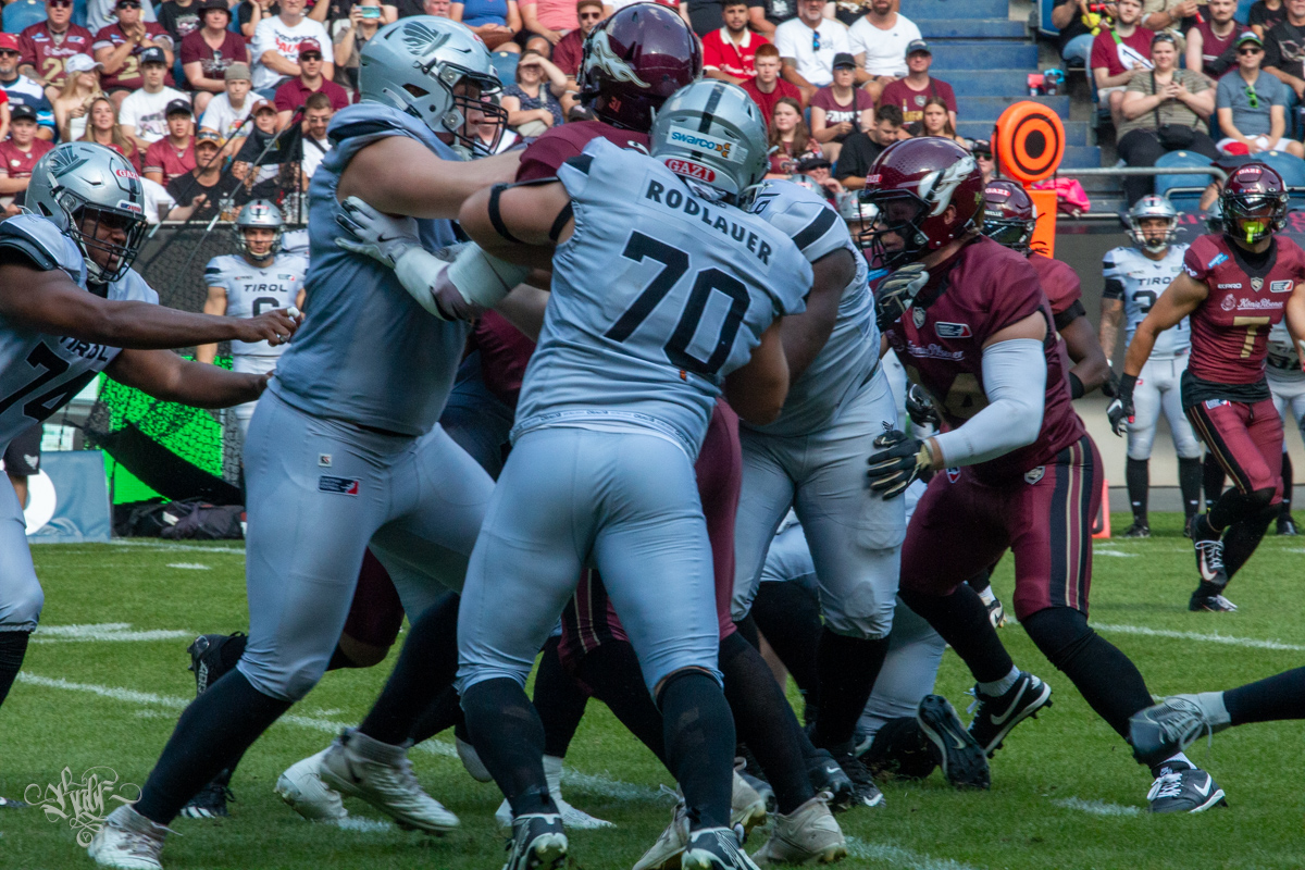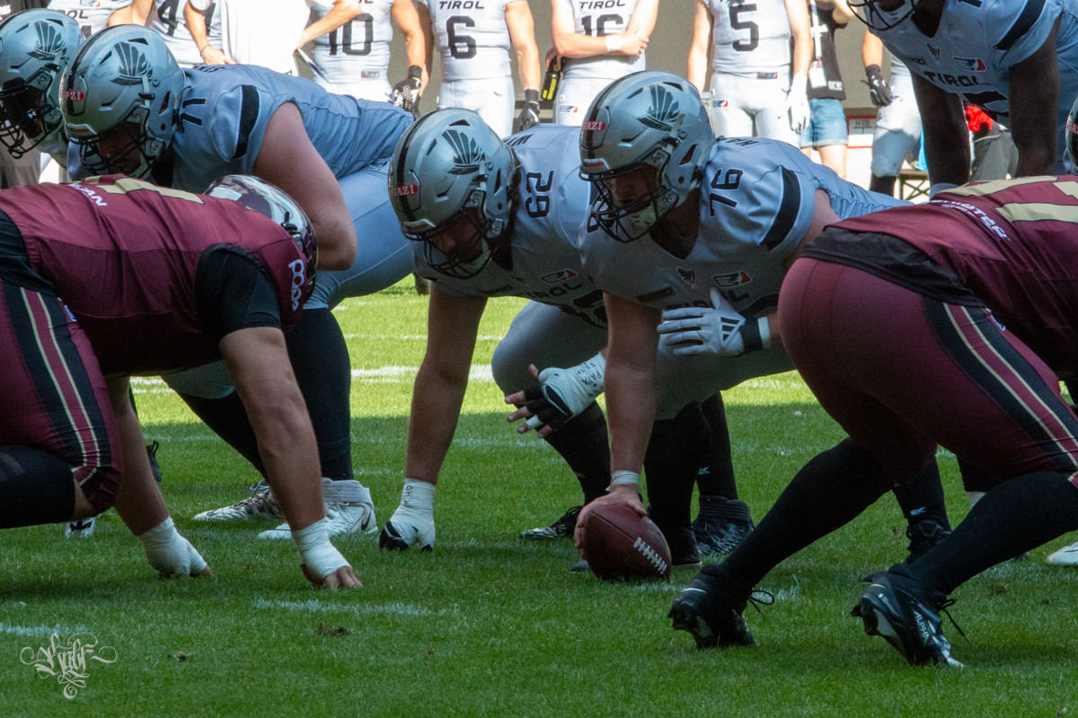 Die Begegnung begann mit hohem Tempo und präzise ausgeführten Offensivaktionen. Tirol eröffnete die Partie mit einem langen Drive über das gesamte Spielfeld, der in einem Touchdown-Pass aus mehr als 30 Yards mündete. Der Angriff der Gäste überzeugte über weite Strecken mit konstantem Raumgewinn und insgesamt 370 erzielten Yards bei 26 First Downs.
