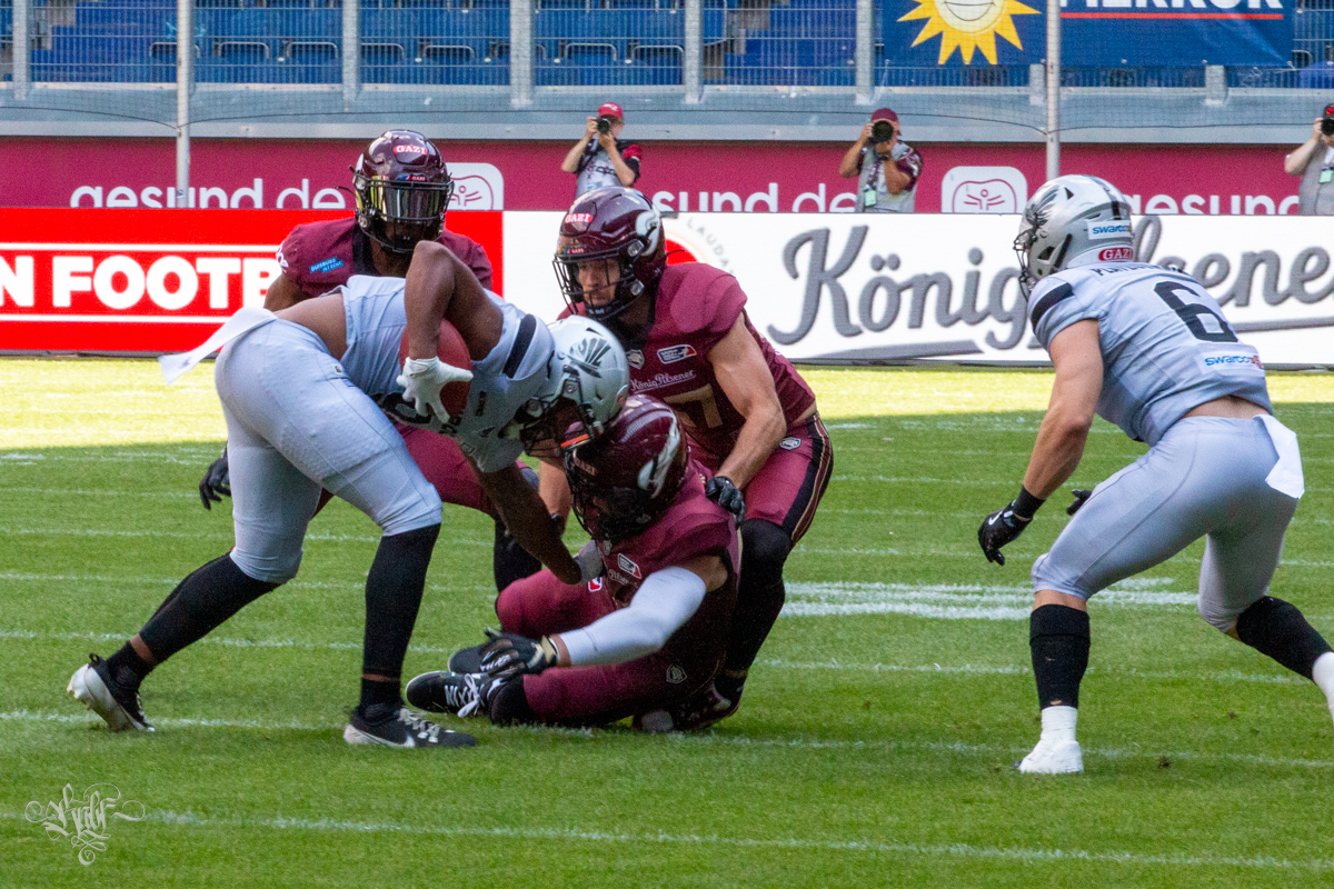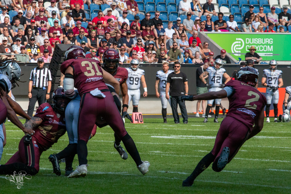 Defensiv gelang es Rhein Fire, den Spielaufbau der Tiroler im zweiten und dritten Viertel zu stören. Mehrere Sacks und wichtige Tackles führten zu Ballverlusten und verhinderten längere Drives des Gegners. Auch wenn Tirol im Schlussabschnitt noch einmal punkten konnte, blieb der Vorsprung der Gastgeber bestehen.
