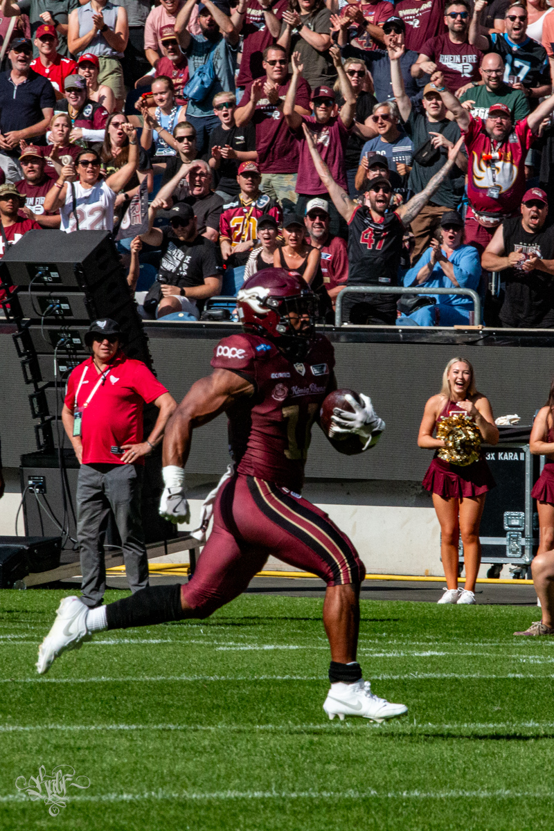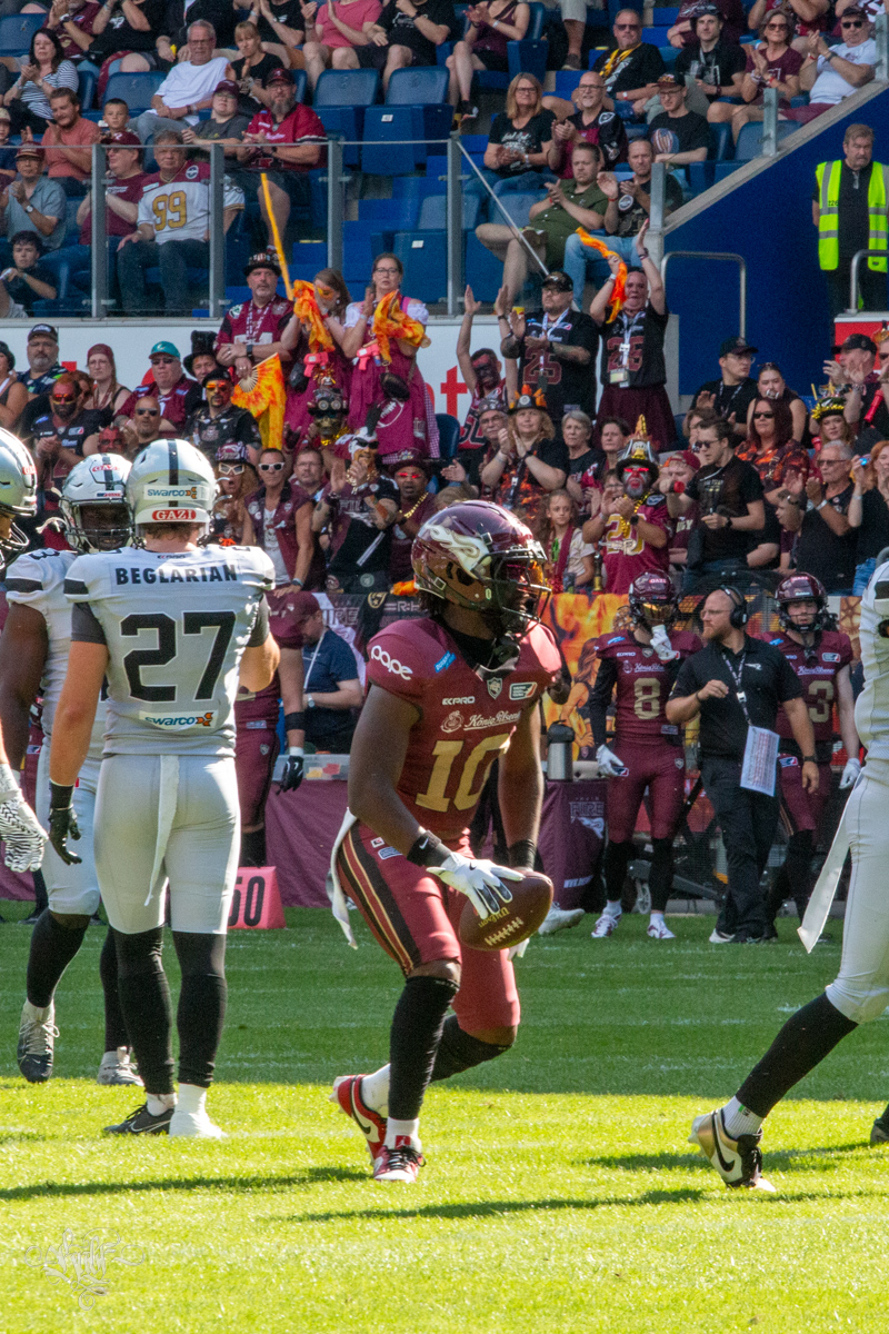 Rhein Fire ließ sich von diesem frühen Rückstand nicht aus dem Konzept bringen. Die Offensive fand schnell ihren Rhythmus und bewegte den Ball ebenfalls über weite Distanzen. Am Ende standen 432 Yards Gesamtraumgewinn und 19 First Downs zu Buche. Schlüsselspieler in der Offense war erneut der Wide Receiver, der mit mehreren Touchdowns maßgeblich zur Wende beitrug. Besonders im dritten Spielabschnitt setzten die Gastgeber mit tiefen Pässen und erfolgreichen Läufen entscheidende Akzente.